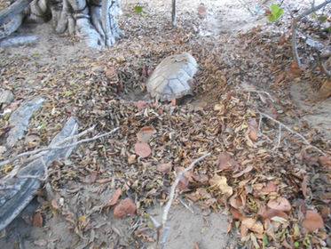 Looking at the picture of the turtle tracks, you can see that they leave a seriously noticeable track for the dogs to follow. Often the vegetation is far from the water and the dogs are able to trap the turtle so far from the water that she can't escape...very sad. Please help us or our turtles will be totally gone from here in a very few years.